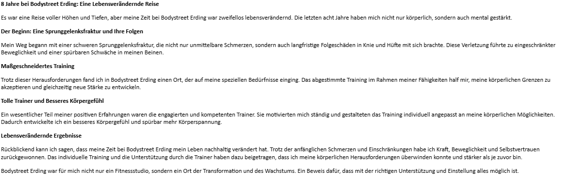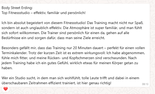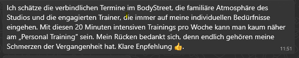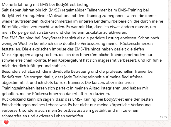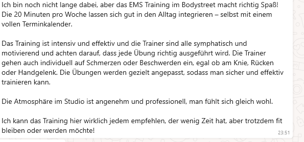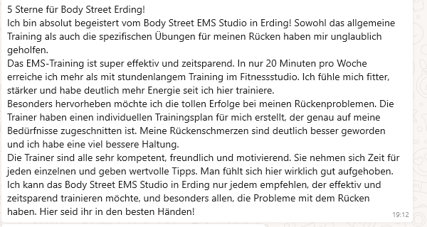 "Bodystreet Erding" ist kein Fitnessstudio. Es ist eine Zeitmaschine. 20 Minuten bei uns ersetzen 3 Stunden im Gym. Ideal für alle, deren Kalender voll ist.
